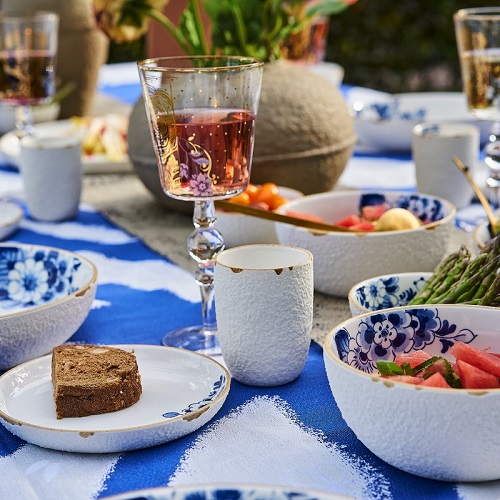 Wat Blauw Bloesem zo uniek maakt, is de combinatie van het verfijnde bloesemdecor met een moderne, soms bijna speelse vormgeving. De lijnen zijn zacht, de verhoudingen net even anders dan je verwacht. Hierdoor krijgt elk item karakter en ontstaat er een servies dat zowel opvalt als moeiteloos combineert met ander servies.