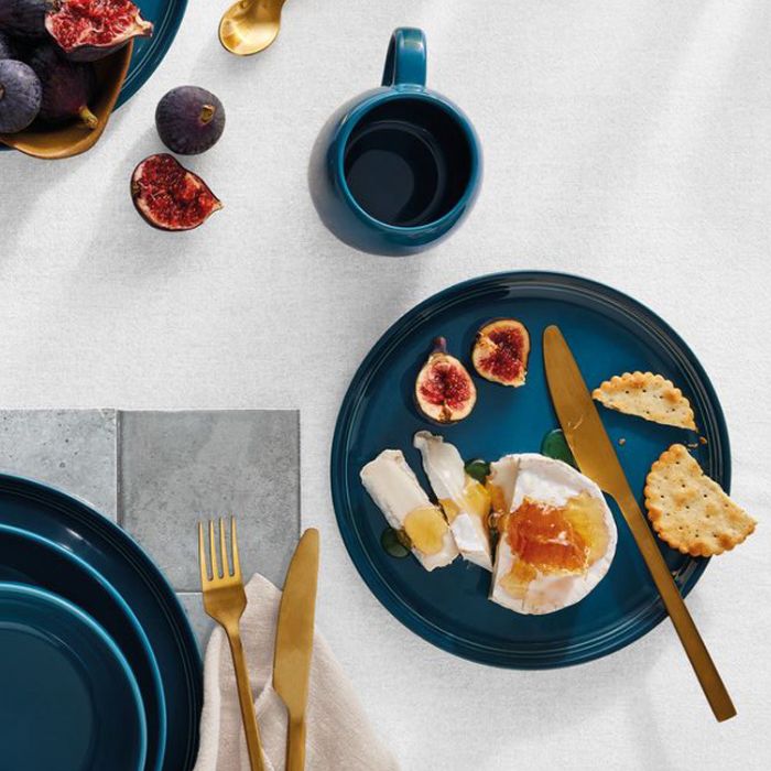 Het Le Creuset servies staat bekend om zijn herkenbare kwaliteit en rijke kleurenpalet. Vooral de verschillende blauwtinten zijn geliefd: van diep en intens Deep Teal tot fris Azure, elegant Bleu Riviera en zacht Chambray. Deze kleuren brengen rust én karakter op tafel en laten zich prachtig onderling combineren. Zo creëer je eenvoudig een tafel die past bij jouw stijl en seizoen.