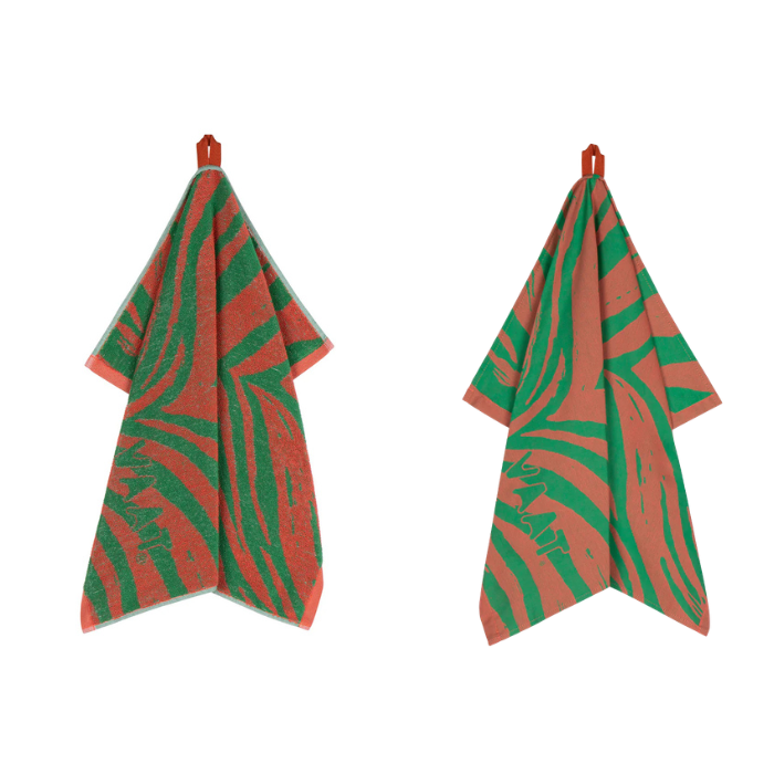 VAAT - Zebra - Theedoek&handdoek Koraal/Groen
